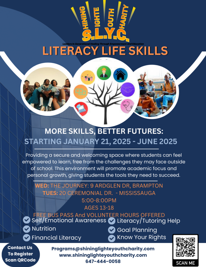 Our Youth Life Literacy Program is designed to be a school year-long initiative offering youth in at-risk neighbourhoods a safe, supportive, and engaging space for learning after school.